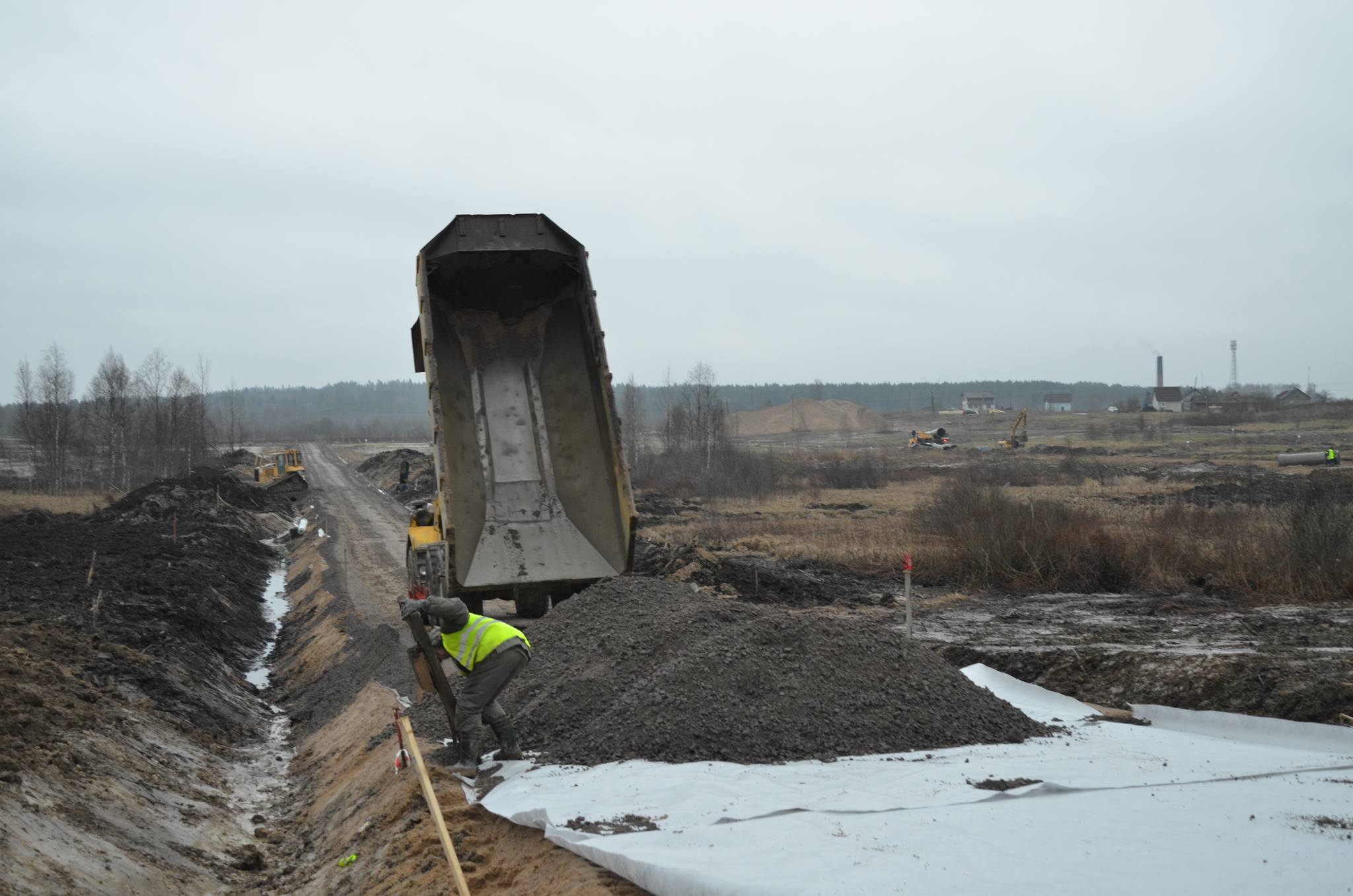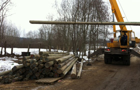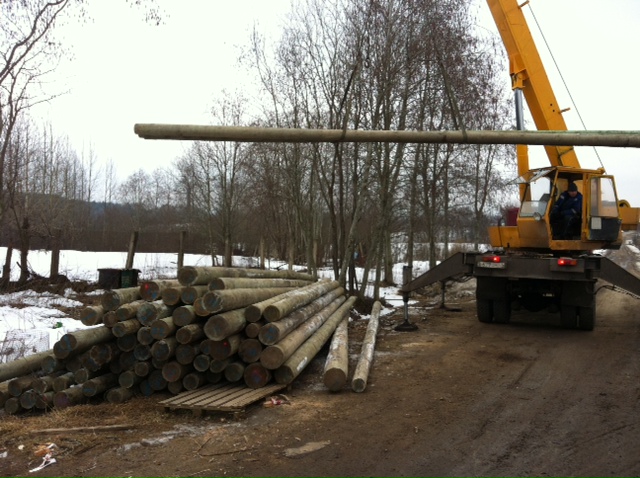 В Сосновские озера завезены столбы для ЛЭП, активно идёт монтаж электрических сетей 2-й очереди поселка.
