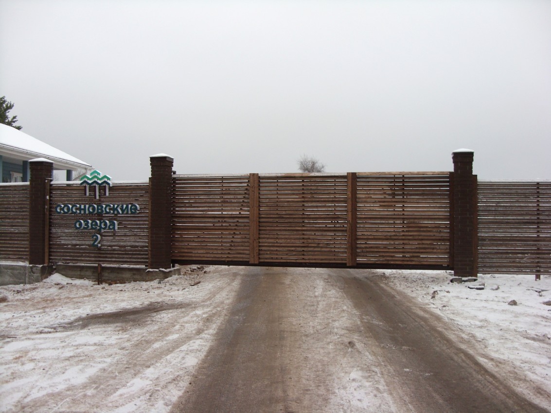Закончено строительство въездной зоны и первой части ограждения поселка "Сосновские озера 2"! Также проложены все 9 км водопроводных труб на территории поселка.