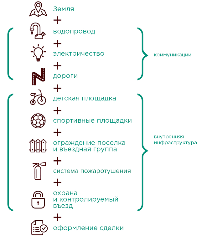 • Это безопасность и удобство. Вся территория огорожена забором. В поселке функционирует контролируемый въезд,  со временем контролируемых въездов будет 2.