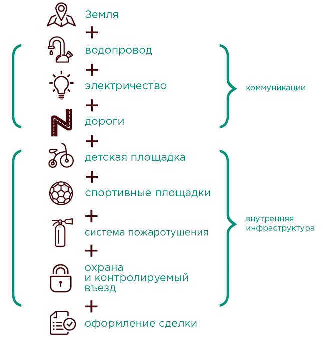 • Помимо минимально необходимого набора инженерии, который включает в себя дороги, электричество и зимний водопровод, для вашей безопасности в поселке проведена и установлена система пожаротушения.