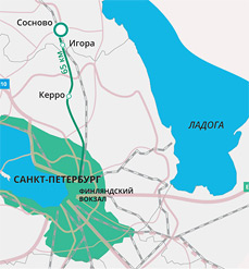 До поселков можно очень быстро и удобно добраться по трассе А121 (Новоприозерскому шоссе). Новая современная 4х полосная дорога проходит от КАД до самого съезда на поселок Сосново.