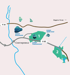 Чуть дальше, в 2 км по направлению к Пескам, по дороге Н60 находится 2-я очередь проекта «Сосновские озера 2». На карте Вы можете увидеть точное расположение поселков и дорогу из города через Сосново .